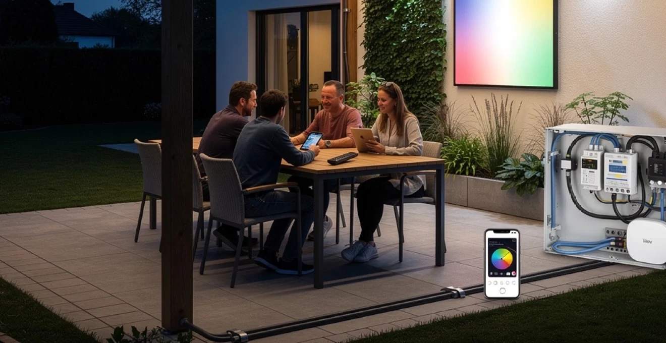 Ces panneaux LED RGB+W sont pilotés via des contrôleurs spécifiques, compatibles DMX, DALI ou Zigbee, offrant un contrôle précis de chaque canal de couleur. Vous pouvez programmer des transitions, des variations d’intensité ou des scénarios synchronisés avec la musique. Bien que plus techniques à mettre en œuvre, ces solutions transforment littéralement votre pergola en espace événementiel, tout en conservant les avantages d’un éclairage LED basse consommation.